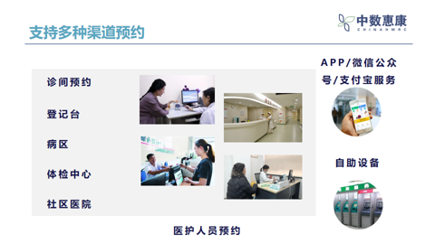 中数惠康ChinaHMRC®依据电子病历系统应用水平分级评价5级标准,实现全面预约平台系统的建设,满足医院在临床、运营、管理科研的新需求和新目标,为构建智慧化、智能化、个性化医院提供支撑。